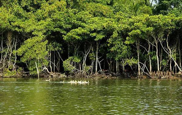 紅樹林是生長在海水中的森林,是熱帶海岸的重要生態(tài)環(huán)境。漲潮時分,茂密的紅樹林只露出翠綠的樹干隨波蕩漾,成為壯觀的“海上森林”。每年近10萬只候鳥來此越冬。