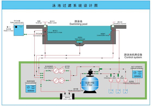 游泳池水質(zhì)處理系統(tǒng)遵從動(dòng)態(tài)平衡工作原理,在循環(huán)處理過(guò)程中達(dá)到水質(zhì)的徹底凈化。游泳池水經(jīng)上溢流水道收集后匯集到平衡水池,會(huì)同補(bǔ)充水一起進(jìn)入循環(huán)水管線...